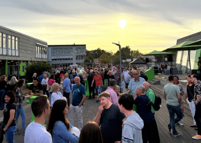 Am Samstag, 6. September 2025, haben wir von 18 Uhr bis 24 Uhr unser zweites jahrgangsübergreifendes Ehemaligenfest gefeiert. Es war ein großartiger Abend mit Ehemaligen aus ganz verschiedenen Generationen. Ganz besonder haben wir uns gefreut, mit dem Jahrgang 2020, der coronabedingt keine Abiturfeierlichkeiten haben durfte, das fünfjährige Abitur nachzufeiern. Für das leibliche Wohl sorgten erneut unsere aktuellen 13er an Essens- und Getränkeständen. Ferner gab es open-air-Live-Musik der Band BIG O aus Ingelheim. Im Rahmen von verschiedenen Führungen konnten sich die Ehemaligen das SMG und dessen Veränderungen auch von Innen anschauen …